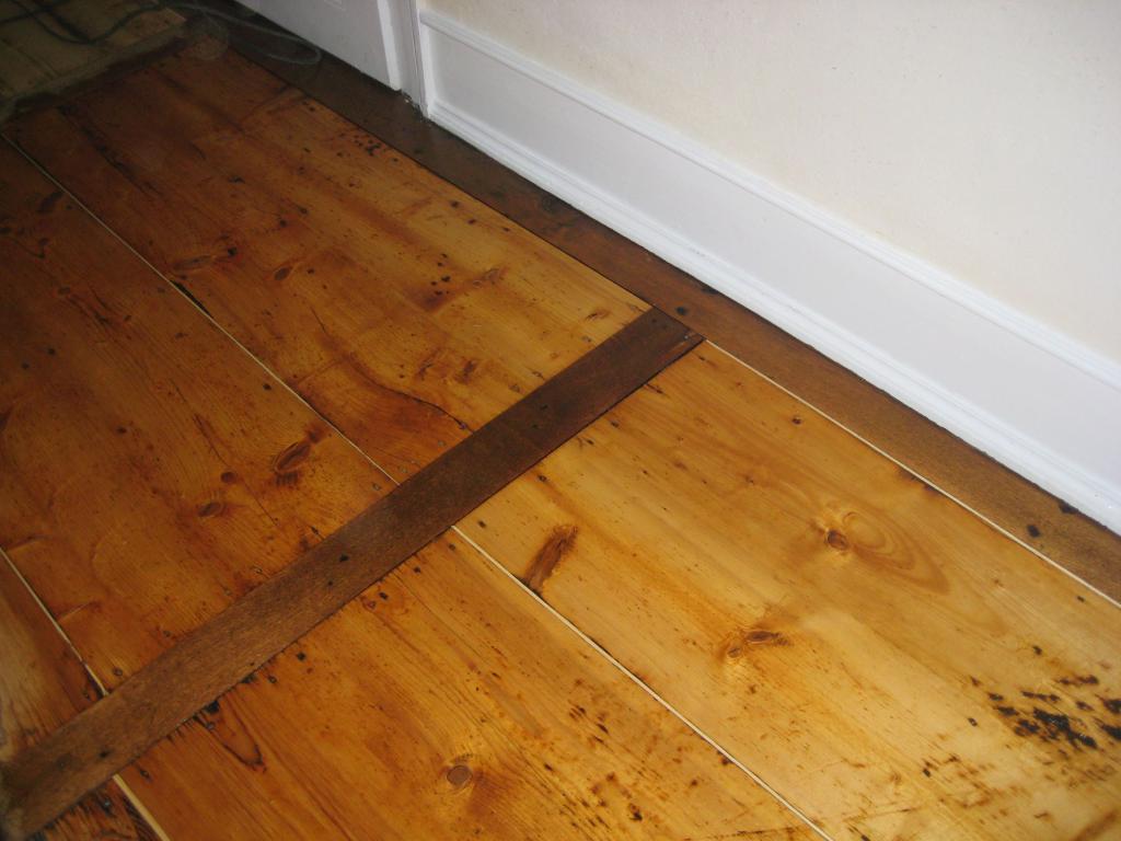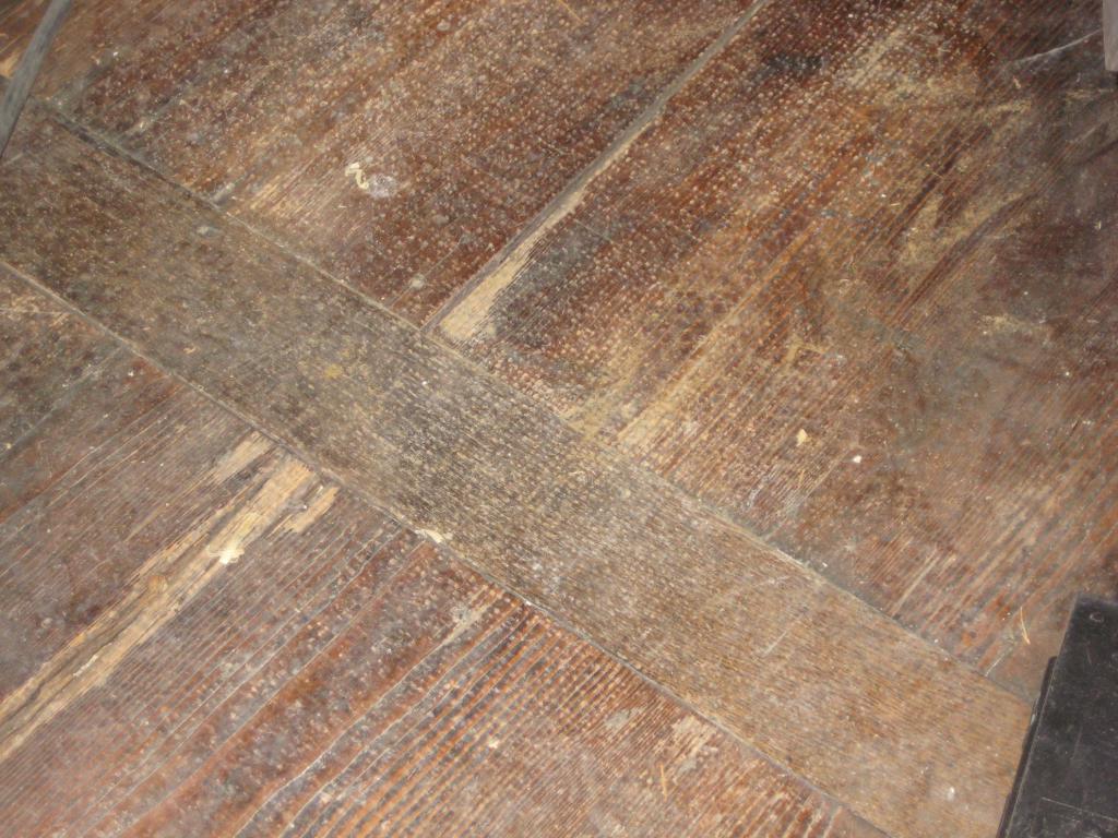 Fichte Fussboden mit Eichequerriegeln vor der Bearbeitung