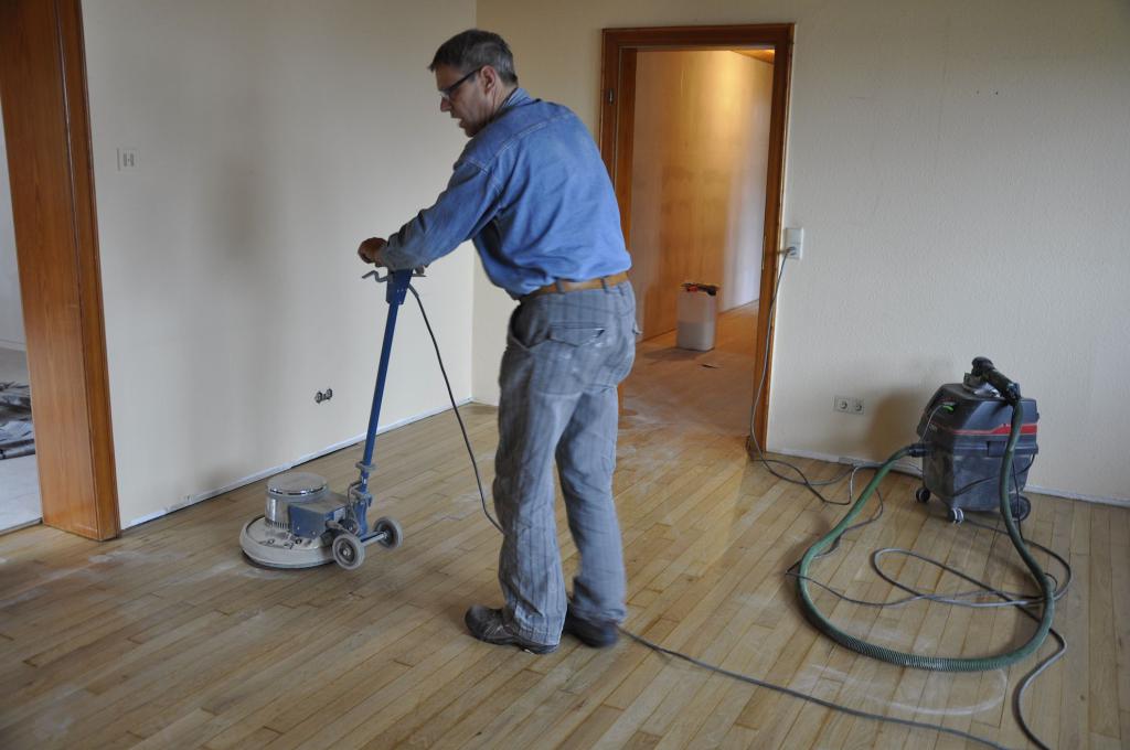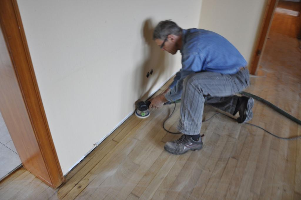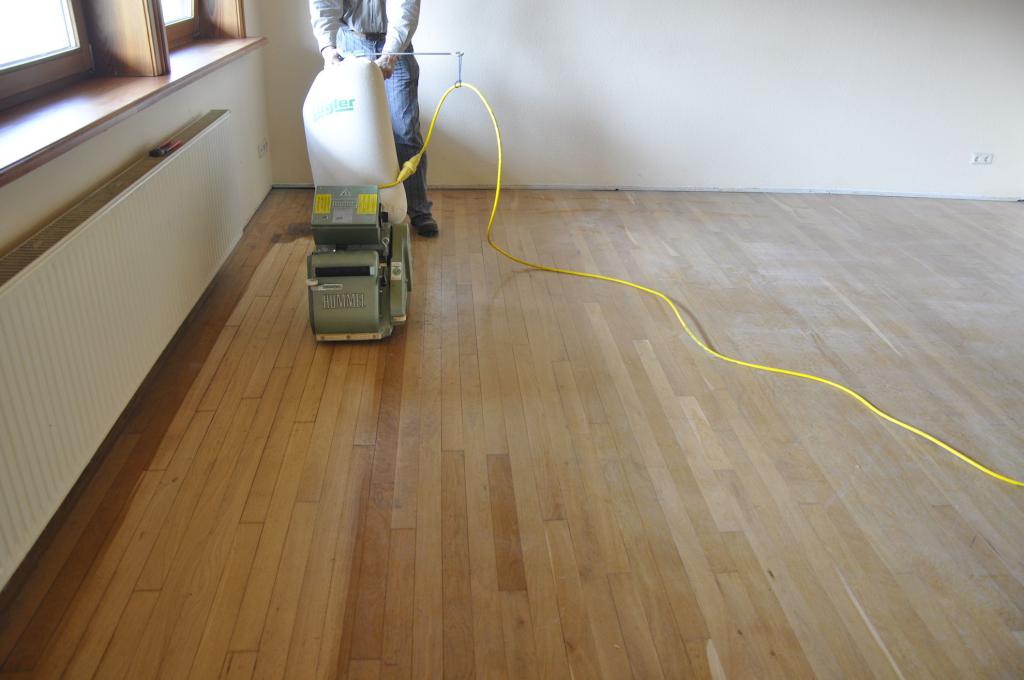 • der alte Fussboden wird abgeschliffen und nach Bedarf abgespachtelt